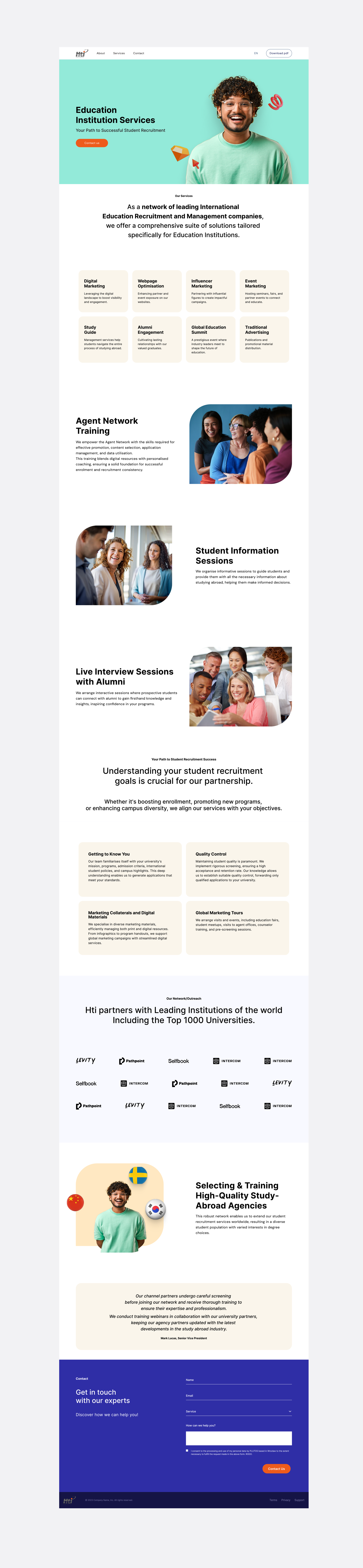 Hti – Education provider Client: Hti - Education provider Website: htiedu.org Date: November 21, 2023 Services: web design Hti proudly collaborates with prestigious institutions worldwide, ranging from private language schools, vocational colleges, and top-ranked universities to government institutions and global education groups.